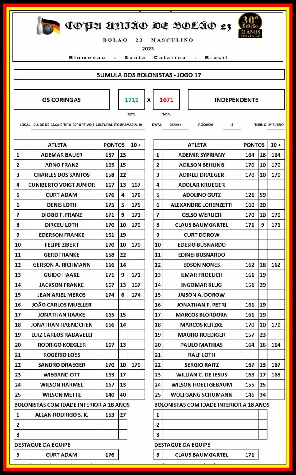 Nesse dia 14 de março de 2023 teve inicio a 30º Edição da Copa União de Bolão 23- Masculino.