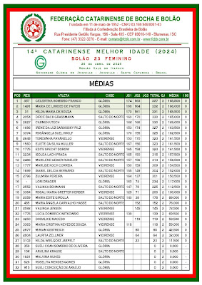 A Sociedade Glória recebe o 14º Campeonato Catarinense da Melhor Idade - Feminino no dia 26 de abril de 2025.